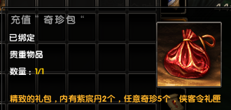6.“奇珍包”内原先附含的道具“金元再生丹”将由1个侠客令礼匣(打开后获得20个绑定的侠客令)代替,请注意查收。